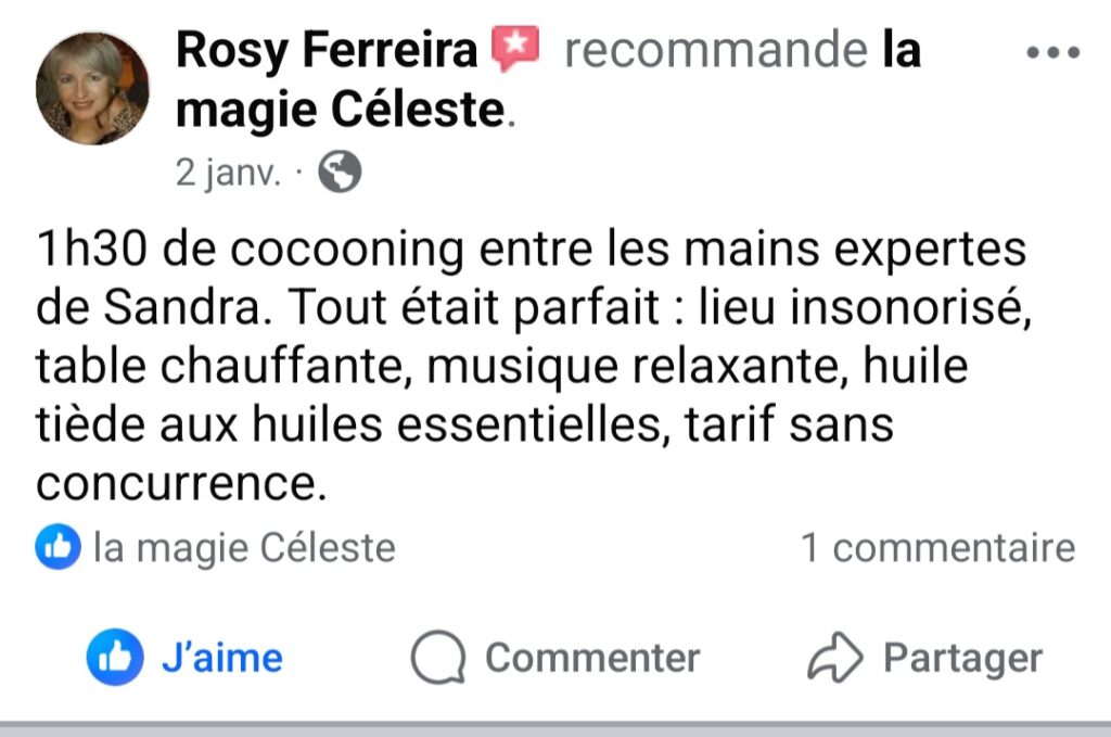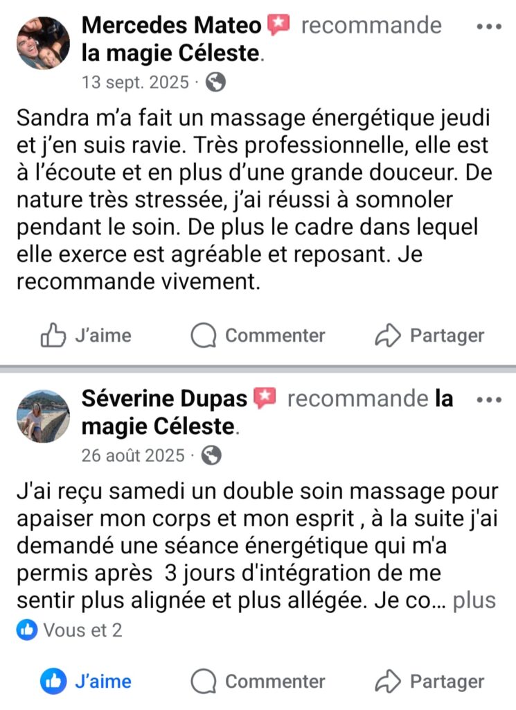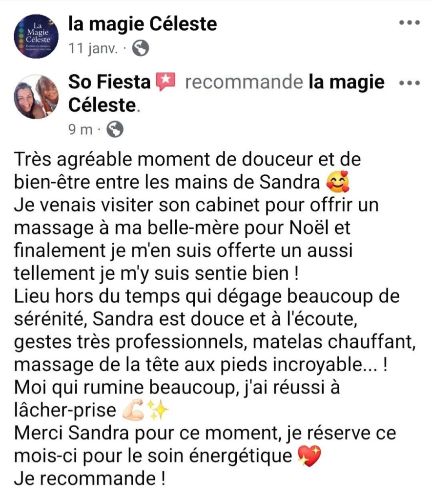 Super massage cadre agréable et chaleureux sandra est tres douce et adapte son massage à votre demande sympathique je reviendrai et essayerai ses soins énergétiques merci pour ce bon moment 🙏🙏🙏