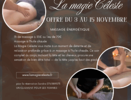 La magie Céleste uniquement pour les femmes Règlement en espèce ou par wero ( application sécurisée par votre banque pour virement direct ) La magie Céleste massage énergétique soin énergétique magnétisme 1 boulevard du général de Larminat 34500 Béziers rendez-vous par téléphone au 0761889573 ou https://lamagieceleste.simplybook.it